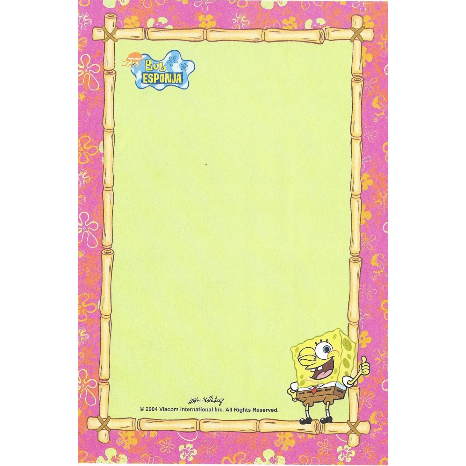 Ano 2004. Papel de Carta Importado Bob Esponja CRS