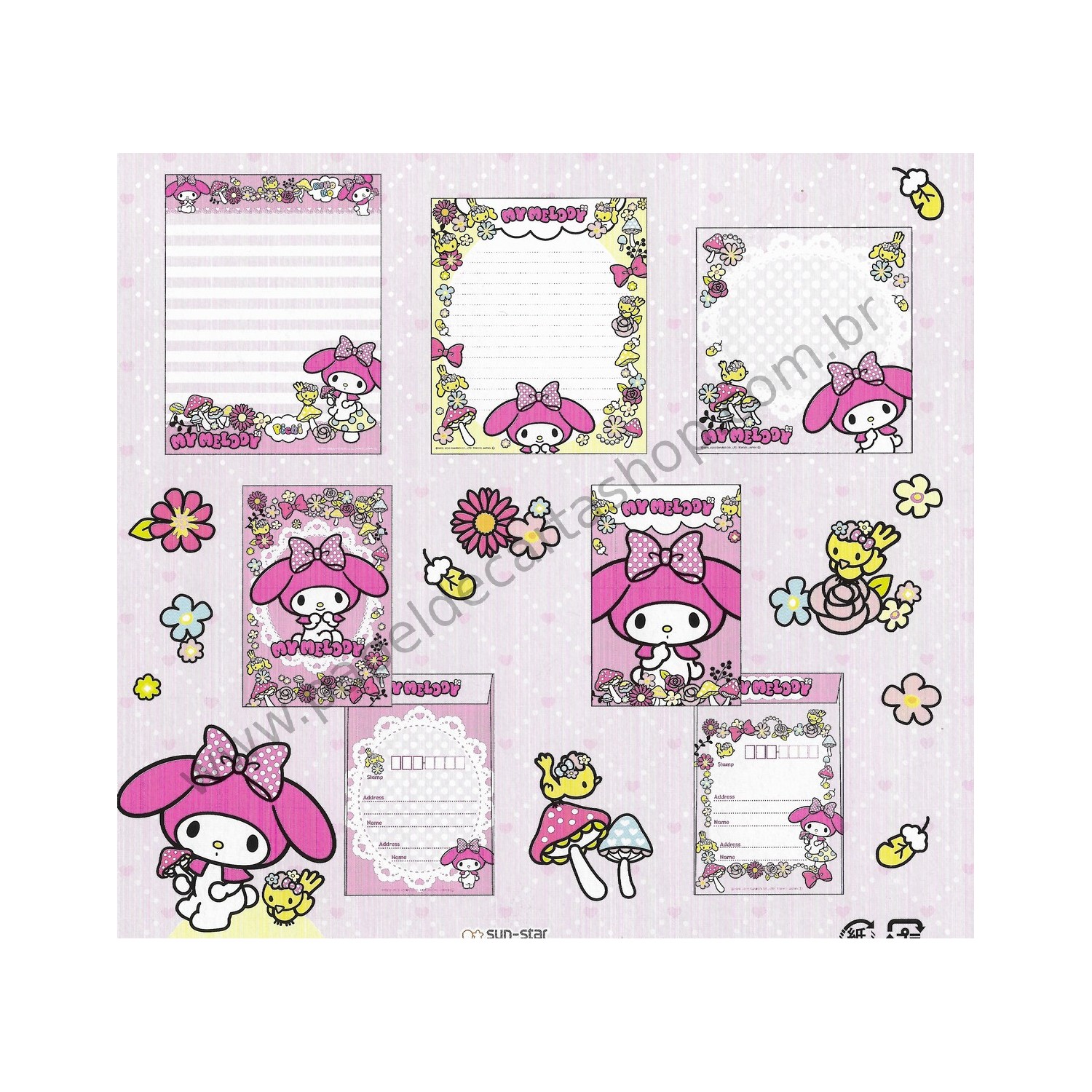 Ano 2013. Kit 2 Conjuntos de Papel de Carta My Melody Trio Sanrio